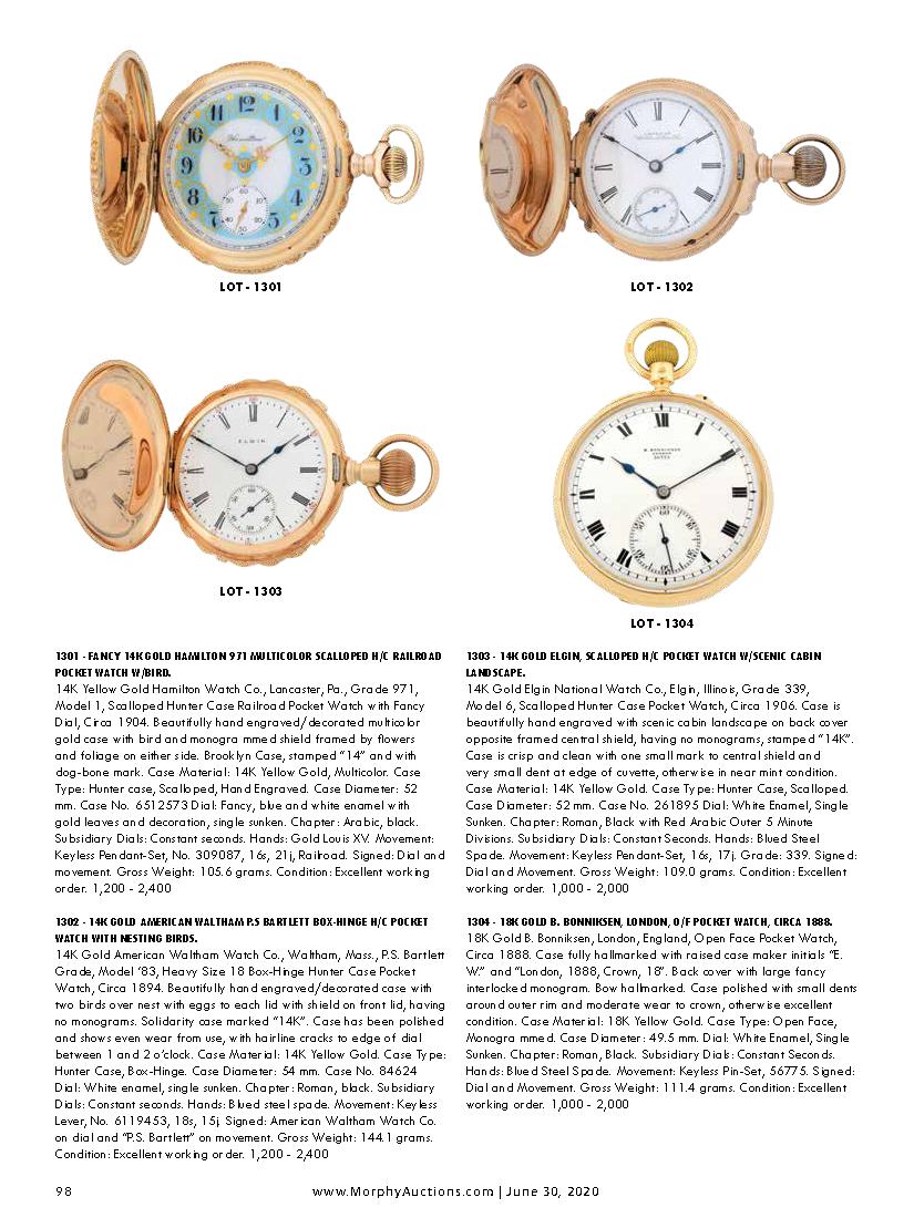 Morphy Auctions Fine Pocket Watches (June 30, 2020)