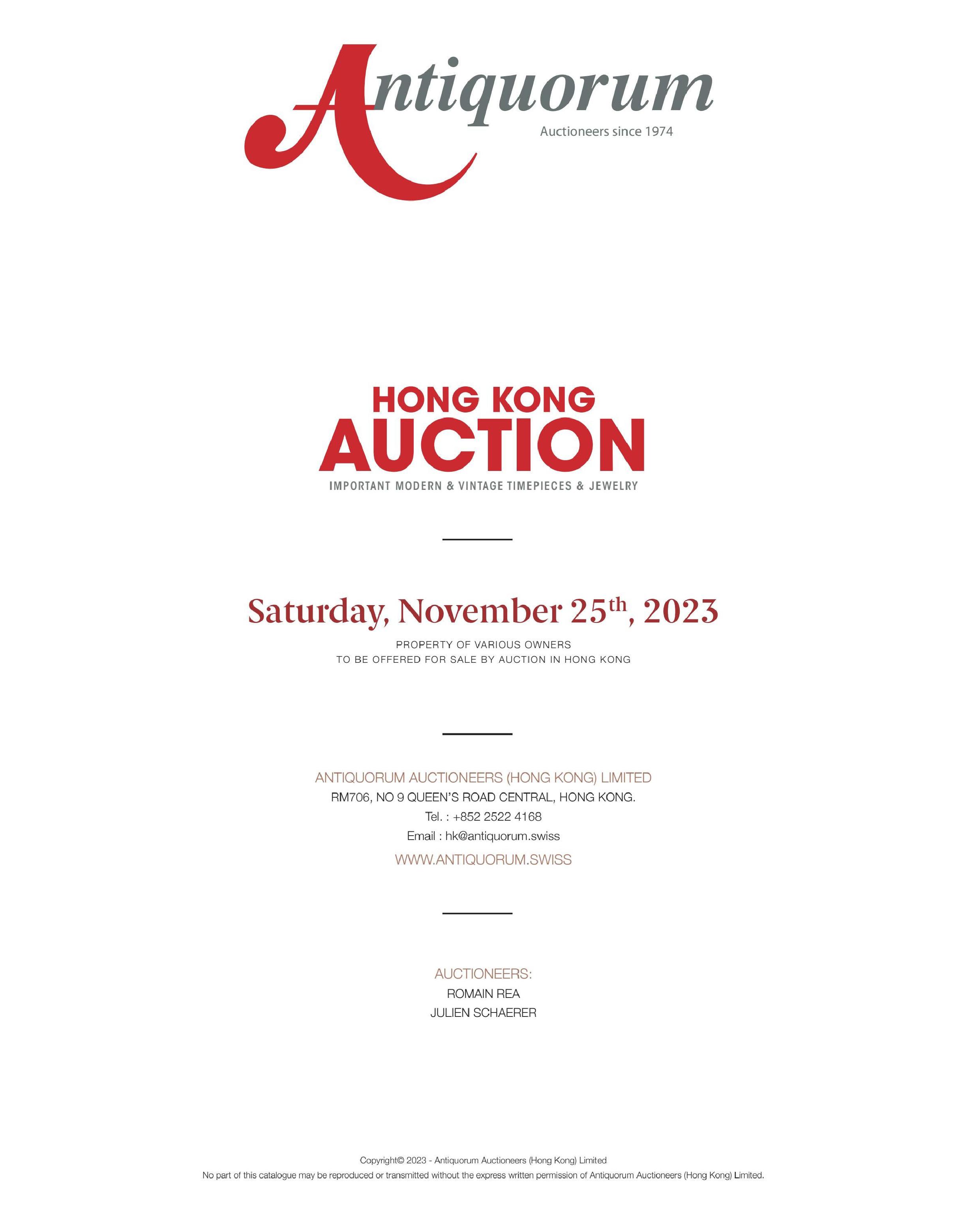 Antiquorum Hong Kong Auction Important Modern & Vintage Timepieces & Jewelry (November 25, 2023)