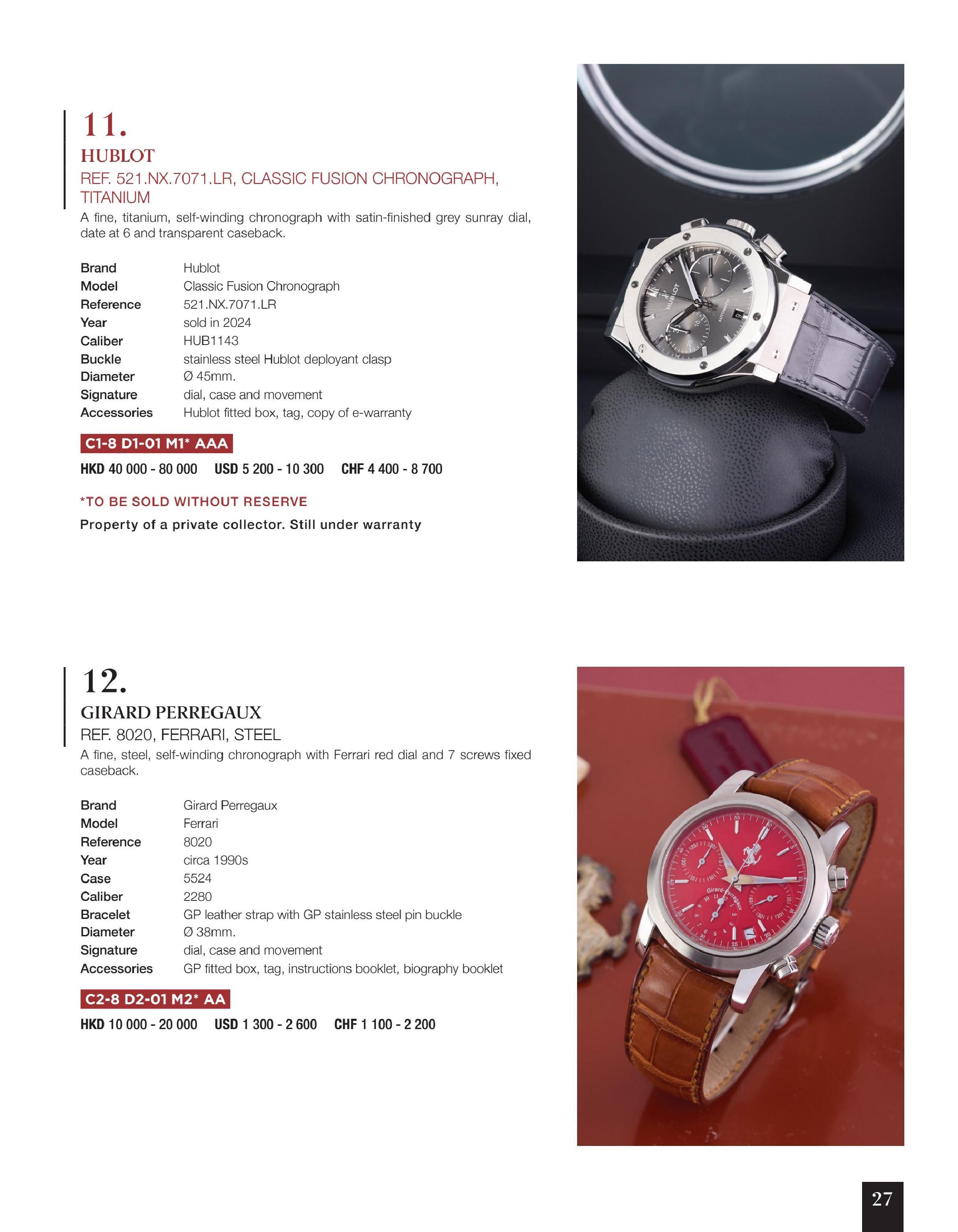 Antiquorum Hong Kong Auction Important Modern & Vintage Timepieces & Jewelry (October 26, 2024)